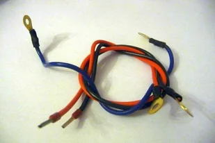 Zestaw kabli służących do podłączenia 2 akumulatorów 18Ah do zasilaczy buforowych o napięciu 24V. W skład zestawu wchodzą 2 kable + i - do podłączenia do zasilacza buforowego oraz jeden kabel do połączenia akumulatorów. Wszystkie kable zakończone "oczkiem".