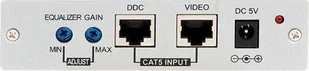 Wsparcie dla HDMI 1. 2 i DVI 1. 0. Współpraca z nadajnikiem Cypress CA-DVIA Korekcja i regulacja wzmocnienia Obsługa sygnału video High Definition do 1080p/UXGA Transmisja sygnału bez strat do 100 m Brak wsparcia dla HDCP Wbudowany w nadajnik EDID Wejście sygnału audio zarówno Coaxial i Stereo (phone jack) Łatwy w instalacji i prosty w obsłudze Specyfikacja techniczna: Wejście: 2 x RJ45CAT5 Wyjście 1 x DVI-I (akceptuje tylko sygnał DVI-D) 1 x Coaxial 1 x L/R Audio Rozdzielczość HD- 480i/p 60, 576p 50, 720P 50/60, 1080i 50/60Hz, 1080p 50/60Hz PC- 640 x 480=VGA72, VGA75, VGA85 800 x 600=SVGA56, SVGA60, SVGA72, SVGA75,SVGA85 1024 x 768=XGA60, XGA70, XGA75, XGA85 1280 x 1024=SXGA60, SXGA75, SXGA85 1600 x 1200=UXGA60 1920 x 1200=redukcja wygaszania WUXGA Zasilanie 5V / 2. 6A DC Pobór mocy 6 W Zawartość opakowania: