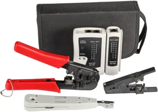 EFB Zestaw narzędziowy 4-częściowy składający się z testera LAN, szczypiec do zaciskania, narzędzia do podłączania LSA, noża do kabli i torby