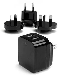 2 Port, Black, Universal Travel Adapter, International Power Adapter, USB Charger (USB2PACBK), Zasilacz, 17 wat, 3.