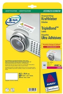 AVERY Zweckform L6140-20 klej silnikowy (45,7 x 25,4 mm w formacie DIN A4, bardzo mocno samoprzylepny, trwale przylegający, do zadrukowanej folii samoprzylepnej, 800 naklejek na 20 arkuszach biały