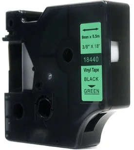 Taśma JetWorld Zamiennik Dymo Rhino Czarny na Zielonym 9mm x 5,5m Winylowa, Vinyl (18440)