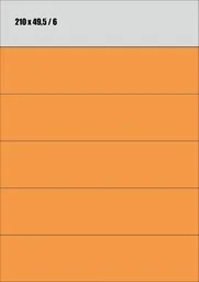 ICPC A4 POMARAŃCZOWE FLUO Etykiety samoprzylepne 210x49 POMARAŃCZOWE FLUO Format: A4 Ilość: 100 arkuszy 6 naklejek na arkuszu Informacje dodatkowe: Nadają się do wszystkich urządzeń drukujących - drukarek atramentowych, drukarek laserowych, kopiarek. Podłoże papierowe, matowe. Kolor pomarańczowy fluo (009) - w rzeczywistości kolor etykiet może nieznacznie różnić się od koloru w ofercie.