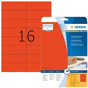HERMA 4552 kolorowe etykiety czerwone, odklejane, 20 arkuszy, 105 x 37 mm, 16 arkuszy A4, 320 sztuk, samoprzylepne, do zadrukowania, matowe, czyste naklejki