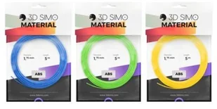 filament abs marki 3dsimo o średnicy 1.75 mm, w trzech szpulach po 5 m (łącznie 15 m) w kolorach: niebieskim, zielonym i żółtym. przeznaczony do rysowania w powietrzu.