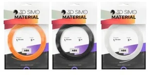 filament abs marki 3dsimo o średnicy 1.75 mm, w trzech szpulach po 5 m (łącznie 15 m) w kolorach: pomarańczowym, czarnym, białym. przeznaczony do rysowania w powietrzu.