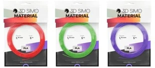 filament pla marki 3dsimo o średnicy 1.75 mm, w trzech szpulach po 5 m (łącznie 15 m) w kolorach: czerwonym, fioletowym i zielonym. wytwarzany z naturalnych surowców tj. buraków cukrowych lub kukurydzy.
