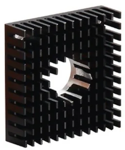 Blok chłodzący w kształcie kwadratu do silnika krokowego zgodnego ze standardem NEMA 17. Pełni funkcję pasywnego radiatora, który wykorzystując zjawisko swobodnej konwekcji wpływa na obniżenie temperatury pracy schładzanego elementu. Blok wykonany jest z wysokiej jakości materiału, charakteryzującego się wysoką wartością współczynnika przewodnictwa cieplnego. Ma standardowe wymiary 40 x 40 x 11 mm. Może być wykorzystywany do chłodzenia silników krokowych ekstruderów MK7 i MK8 stosowanych w drukarkach 3D. Radiator w czarnym kolorze.