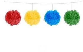 Girlanda pomponikowa Kule w kolorze czerwonym, żółtym, niebieskim i zielonym. Wielkość: długość: 3 m, średnica pompona 12 cm. Opakowanie: 1 szt.