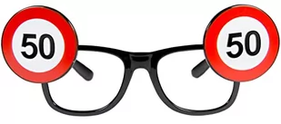 Okulary na 50 urodziny z kolekcji "Traffic Birthday". Plastikowe czarne oprawki z ogromnymi znakami zakazu - to produkt, który każdy pięćdziesięciolatek założy z wielką ochota i będzie pozował do wspólnych fotek.