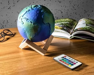 Piękne trójwymiarowe odwzorowanie powierzchni naszej niezwykłej planety, które można podziwiać aż w 16 kolorach. Lampa przypomina przy okazji podświetlany globus i stylowo prezentuje się praktycznie w każdym wnętrzu. Kolory można zmieniać za pomocą pilota lub dotykiem, wystarczy podłączyć lampkę do zasilania przez dołączony kabel USB, naładować ją, umieścić na stylowej drewnianej podstawce.