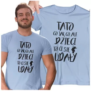 Koszulka dla TATY modny prezent na Dzień Ojca Stylowa koszulka TATO CO JAK CO, ALE DZIECI CI SIĘ UDAŁY kolor błękitny