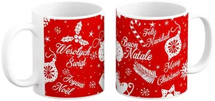 Kubek Świąteczny Wesołych Świąt w różnych językach Czerwony Prezent pod Choinkę na Mikołaja