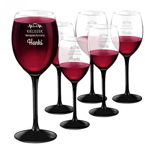 6 grawerowanych kieliszków do wina z oryginalnymi czarnymi nóżkami i dedykacją dla bliskich na wyjątkową okazję.