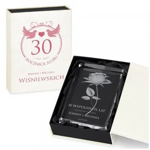 Kryształ 3D grawerowany róża w opakowaniu z nadrukiem dla pary na 30 rocznicę ślubu