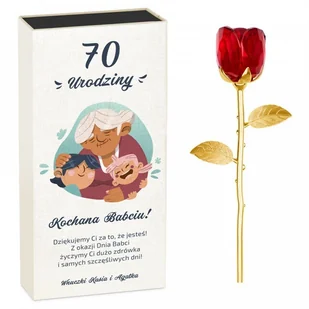 Róża kryształowa w pudełku z nadrukiem dla babci na 70 urodziny