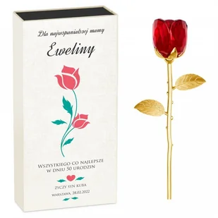 Róża kryształowa w pudełku z nadrukiem dla mamy na 50 urodziny