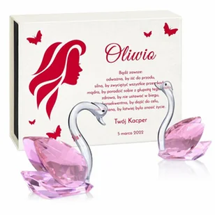 Wspaniałe, kryształowe łabędzie dedykowane dla niej i zapakowane w eleganckie pudełko zdobione spersonalizowanym nadrukiem.