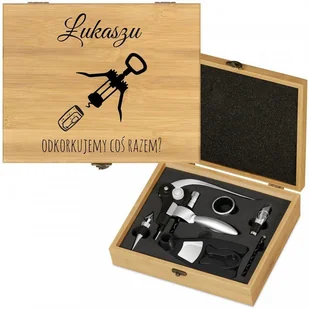Akcesoria do wina zestaw deluxe w skrzynce z nadrukiem dla niego na imieniny