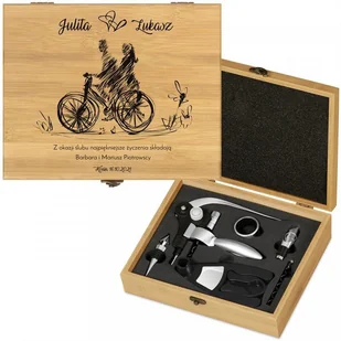 Akcesoria do wina zestaw deluxe w skrzynce z nadrukiem dla pary na ślub