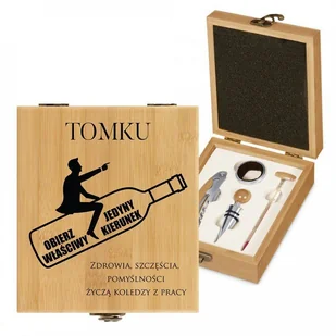 Akcesoria do wina zestaw w skrzynce z nadrukiem dla kolegi