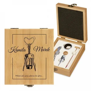 Akcesoria do wina zestaw w skrzynce z nadrukiem dla pary na ślub rocznicę parapetówkę