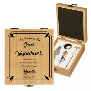 Akcesoria do wina zestaw w skrzynce z nadrukiem dla męża na urodziny