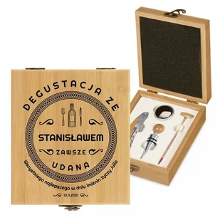 Akcesoria do wina zestaw w skrzynce z nadrukiem dla niego na imieniny