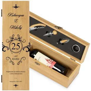 Akcesoria do wina zestaw w skrzynce z nadrukiem dla pary na 25 rocznicę
