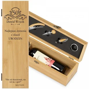 Akcesoria do wina zestaw w skrzynce z nadrukiem dla niego na 50 urodziny