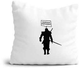 #zabijam potwory Tytułowy bohater Geralt z Rivii to wiedźmin, mutant, zabójca potworów, mistrz we władaniu mieczem, który posługuję się magicznymi znakami wiedźmińskimi. Saga opisuje losy Geralta, działającego na mocy prawa niespodzianki związuje się z Ciri zwaną Lwiątkiem z Cintry. SPECYFIKACJA PODUSZKI: Wymiar 40 x 40cm Gramatura 180g/m2 Certyfikat jakości tkaniny Oeko-Tex 100 Miękka mikrofibra pościelowa Wygodny i estetyczny zamek błyskawiczny Nadruk naniesiony trwałą metodą Sublimacji (zalecamy pranie w temperaturze max 40 stopni)