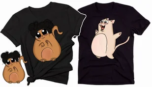 Zestaw koszulek dla pary. Zestaw składa się z dwóch koszulek damskiej i męskiej. Koszulki wykonane z bawełny. Koszulka damska jest to klasyczny t-shirt z podwijanymi na stałe rękawkami. Wiązane na dole jest tylko do zdjęcia.