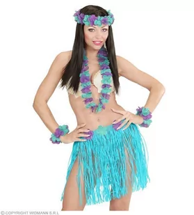 Hawajski zestaw w wersji DELUXE w NIEBIESKIEJ kolorystyce będzie stanowił idealny element egzotycznego przebrania na HAWAJSKIE PARTY. W zestawie znajduje się spódnica wykonana z lekkiej raffi z dołączonym kwiecistym pasem, opaska na głowę, bransoletki oraz naszyjnik.