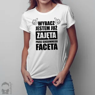 Wybacz jestem już zajęta przez seksownego faceta - damska koszulka z nadrukiem