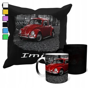 ZESTAW KUBEK MAGICZNY + POSZEWKA Z PODUSZKĄ- GARBUS SAMOCHODY + IMIĘ