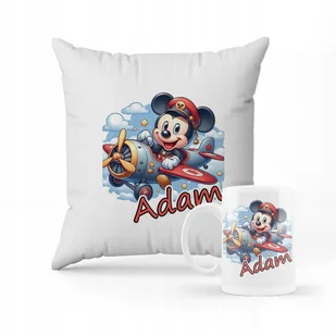 ZESTAW PODUSZKA + KUBEK Prezent Myszka Miki samolot+ IMIĘ