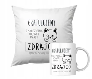 ZESTAW PODUSZKA + KUBEK Prezent ODEJŚCIE Z PRACY NOWA PRACA DLA KOLEGI