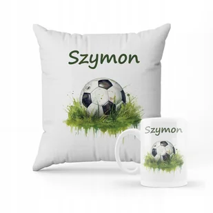 ZESTAW PODUSZKA + KUBEK Prezent Piłka Nożna Boisko + IMIĘ