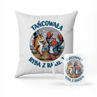 ZESTAW PODUSZKA + KUBEK PREZENT TAŃCOWAŁA RYBA Z RAKIEM Mem Piosenka #5