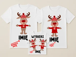 Świąteczny zestaw koszulek dla rodziny 2+1 – Renifery w czapkach zimowych Stwórz magiczny, rodzinny klimat świąt z uroczym zestawem koszulek dla całej rodziny! Każda koszulka ozdobiona jest wesołym reniferem w czerwonym sweterku i czapce zimowej — idealna propozycja na wspólne zdjęcia, świąteczne spotkania czy rodzinny prezent pod choinkę. Zestaw zawiera: koszulkę dla mamy z reniferem w czerwonej sukience, koszulkę dla taty z reniferem w sweterku, koszulkę dla dziecka z napisem WYBIERZ (możliwość wyboru renifera chłopca lub dziewczynki). Dlaczego warto: idealny komplet na świąteczne sesje zdjęciowe, miękki, oddychający materiał (100% bawełna), nadruk wysokiej jakości odporny na pranie, możliwość dopasowania rozmiarów dla każdego członka rodziny.