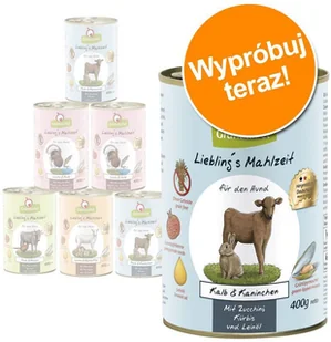Mieszany pakiet próbny Liebling's Mahlzeit 6 x 400g zawiera następujące warianty: 2 x Łosoś i indyk 2 x Cielęcina i królik 1 x Wołowina i bażant 1 x Jagnięcina i ziemniaki Mieszany pakiet próbny Liebling's Mahlzeit 12 x 400 g zawiera następujące warianty: 4 x Łosoś i indyk 4 x Cielęcina i królik 2 x Wołowina i bażant 2 x Jagnięcina i ziemniaki Mieszany pakiet próbny Liebling's Mahlzeit 24 x 400 g zawiera następujące warianty: 8 x Łosoś i indyk 8 x Cielęcina i królik 4 x Wołowina i bażant 4 x Jagnięcina i ziemniaki Mieszany pakiet GranataPet Liebling's Mahlzeit w skrócie: Miejsce produkcji:
