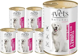 Mokra karma 4Vets Natural dla psa z indykiem puszka 6 x 400 g