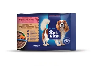 Mokra karma dla dorosłych psów, saszetki z kaczką i wołowiną OptiVital 4x85 g