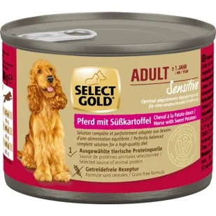 SELECT GOLD Sensitive mokra karma to rozwiązanie dla psów, które mają skłonności do nietolerancji pokarmowych lub wrażliwego trawienia. Wysokiej jakości receptury charakteryzują się niewielką ilością, bardzo dobrze tolerowanych składników i są dodatkowo dostosowane do poszczególnych etapów życia. Zalety w skrócie: Każda receptura zawiera tylko jedno wysokiej jakości źródło białka zwierzęcego (Single Protein) – szczególnie odpowiednia dla psów o wrażliwym układzie pokarmowym. Receptura zawiera tylko jedno bardzo dobrze tolerowane źródło węglowodanów: