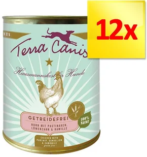 To gwarantuje, iż również produkcja karm dla psów bazuje wyłącznie na najlepszych składnikach. Zalety karmy Terra Canis bez zbóż: Mięso i filety rybne, jak również pozostałe składniki zostały delikatnie obrobione, posiadają jakość produktów spożywczych oraz pochodzą z Niemiec Terra Canis gwarantuje wyłączne zastosowanie składników wymienionych w składach poszczególnych wariantów smakowych Specjalny proces gotowania (niska temperatura gotowania) pozwala na zachowanie wartościowych, naturalnych witamin, drugorzędnych składników roślinnych, składników mineralnych, elementów śladowych oraz protein w możliwie dużych ilościach Poprzez dodatek do receptury karmy dokładnie wyliczonych ilości skorupek jaj oraz ziemi mineralnej, w sposób naturalny karma ta dostarcza psu wapnia i fosforu w optymalnym stosunku 1,3: 1,0 Firma Terra Canis zrezygnowała w produkcji karm z dodatku mączek zwierzęcych i kostnych, niskowartościowych produktów ubocznych, spulchniaczy, odpadów rzeźniczych, barwników sztucznych, sztucznych konserwantów, ulepszaczy smaku, aromatów sztucznych, sztucznych utleniaczy jak również innych syntetycznych składników oraz cukru Składniki karmy dla psów Terra Canis: Mięso: dostarcza organizmowi wysokowartościowych protein oraz nienasyconych kwasów tłuszczowych Omega 6.