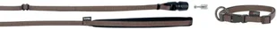czarnym, czerwonym oraz brązowym solidna, niemiecka jakość i estetyczne wykonanie Parametry: szerokość smyczy: 1cm długość smyczy: regulowana w zakresie 140-200cm długość uchwytu 20cm szerokość obroży: 1cm obwód obroży: