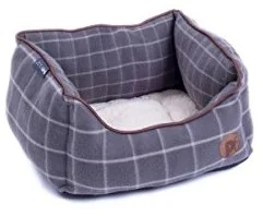 Petface petface kosz na łóżko dla zwierząt domowych, kształt, z poduszka z imitacji skóry owczej, kordu zewnętrzne warstwy, z wejściem, w kratkę, s, szary 15119