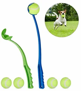 niebieski i zielony Miotacz piłek dla psów - Zabawa dla psa i właściciela - Idealny do ogrodu, parku lub na spacer - Umożliwia szczególnie długie rzuty - Podnosi piłki z ziemi bez schylania się - Nie dotykaj brudnych piłek ręką Zakres dostawy - 2x ramię do rzucania piłką - 5x piłka tenisowa - Elementy dekoracyjne nie wchodzą w zakres dostawy