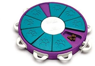 Węsząc i pomagając sobie łapą lub pyszczkiem pies natrafi na przegródki, które będzie musiał odblokować, zanim sięgnie po ukryte w nich łakocie. System blokady polega na przesuwaniu uchwytu znajdującego się na brzegu zabawki. Sprawdź czy Twój czworonóg jest geniuszem!