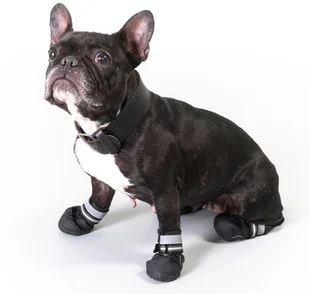 Wstawki z syntetycznej skóry dodają sportowego charakteru butom przy jednoczesnym utrzymaniu suchych łap. Podeszwy z profilem TPR ("Thermoplastic Rubber") zapewniają psu bezpieczną przyczepność na śliskim i kamienistym podłożu. Ponadto łapy są chronione przed niekorzystnymi warunkami pogodowymi oraz czynnikami zewnętrznymi takimi jak sól, piasek i żwir. Dwa rzepy zapewniają idealne dopasowanie butów do łap psów wszystkich ras. Odblaskowe paski zwiększają bezpieczeństwo Twojego psa podczas spaceru po zmierzchu.